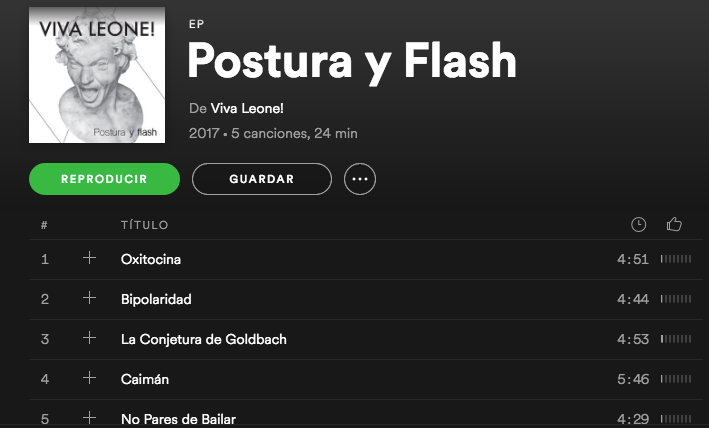 Pues lo ideal es que se hicieran con una copia de “Postura y flash”. Pero, aun así “Postura y Flash” de Viva Leone! puede escucharse en Spotify y iTunes o en nuestro Bandcamp.