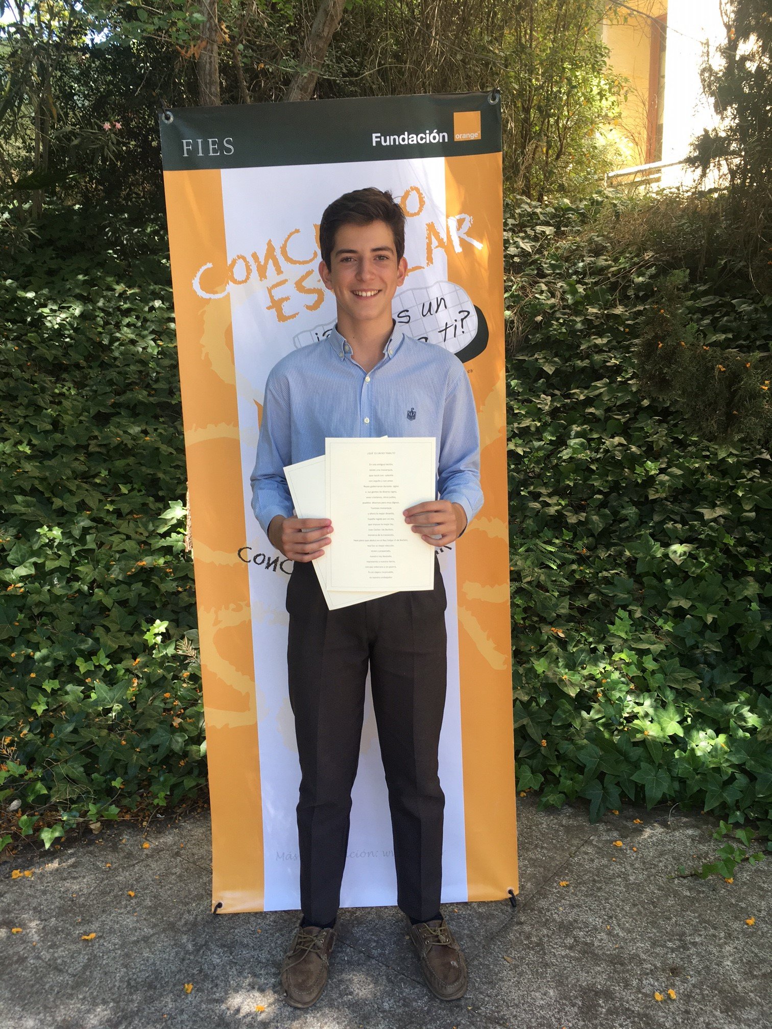 El alumno Fernando Borrallo Forte, que cursa 2º de E.S.O. en el Colegio Buen Pastor, de Sevilla, representará este año a Andalucía ante don Felipe en la audiencia privada que este ofrecerá a los ganadores de la 36ª edición del concurso ¿Qué es un Rey para ti?, organizado por la Fundación Institucional Española (FIES) y patrocinado por Orange y su fundación.