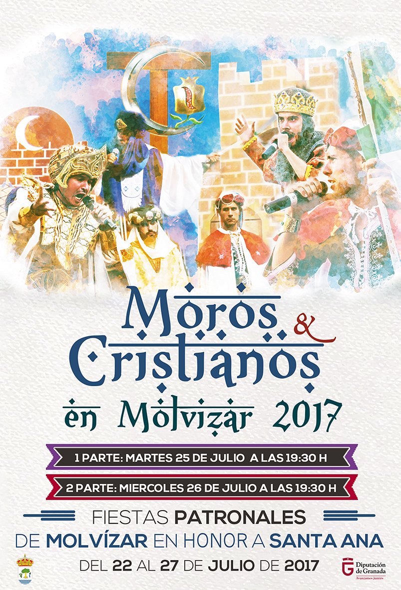 Como se lleva representando desde hace más de 100 años, los días 25 y 26 de julio de 2017 a las 19:30 horas, tendrá lugar la representación de los moros y cristianos. La representación se desarrollará como ya es costumbre en la conocida como plaza de la palmera, donde cada año se une más público para disfrutar de esta característica representación histórica llevada a cabo por la asociación de moros y cristianos en Molvízar y numerosos molviceños.