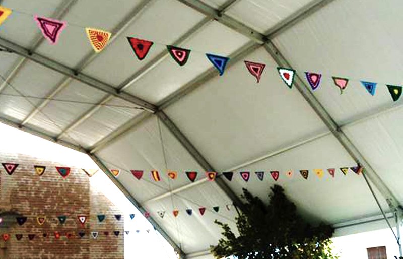 30 vecinas de todas las edades participan en la elaboración de los tejidos de ganchillo que componen la decoración de arte urbano.