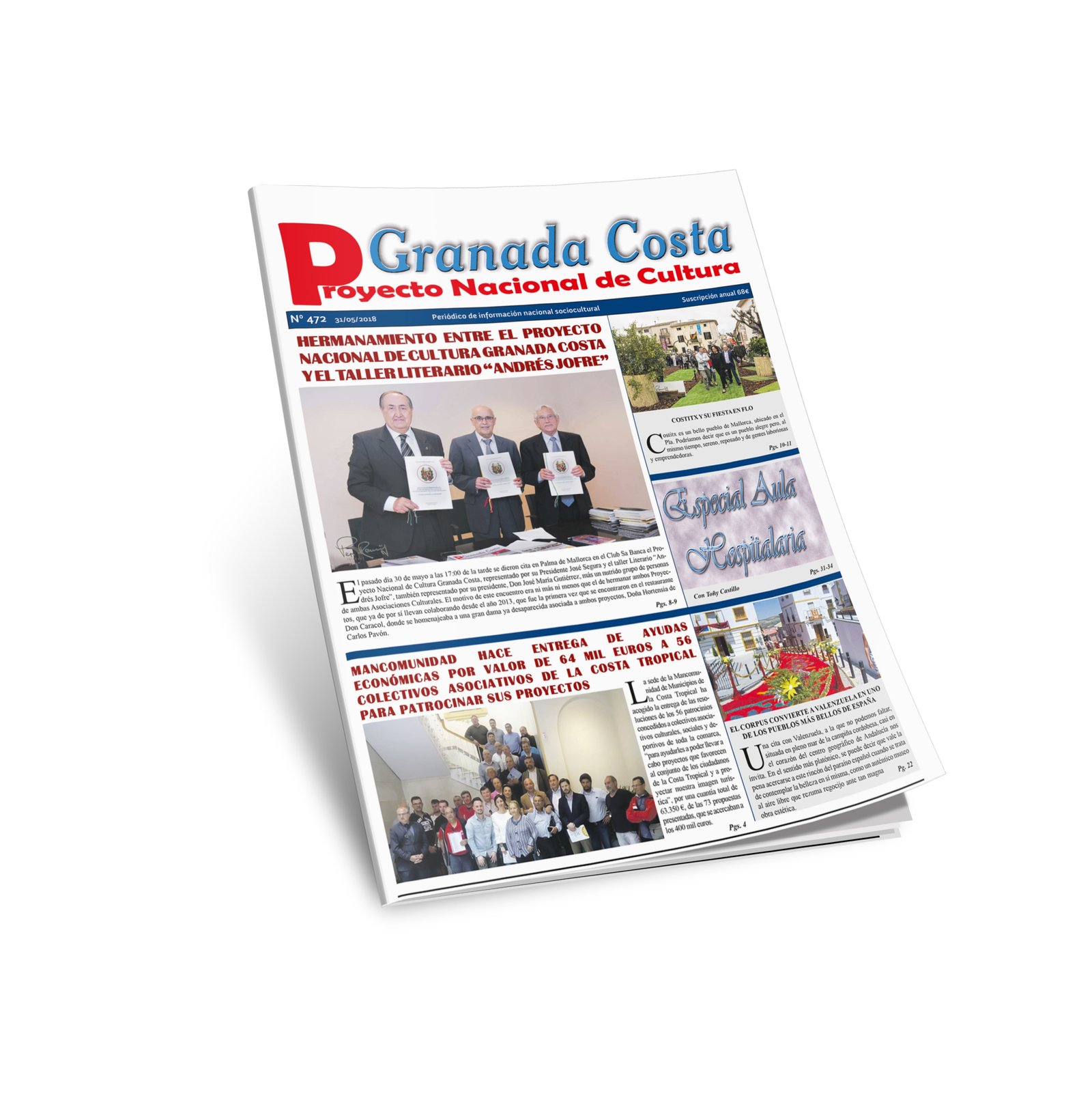 Les informamos que ya se encuentra habilitada la visión del último número del Periódico Granada Costa correspondiente al Proyecto Nacional de Cultura Granada Costa número 472, 31 de junio 2018, donde podrán visualizar un diseño más amplio al que estamos acostumbrados y numerosas entrevistas a diferentes personalidades.