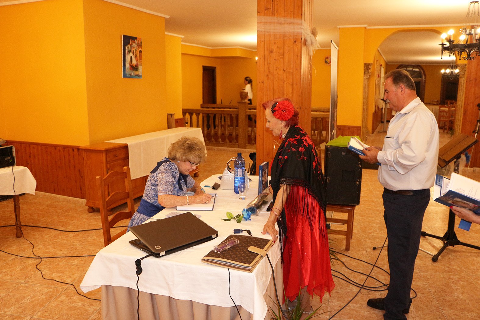 Terminada la presentación del libro, y la firma de la autora a todas las personas que se interesaron por esta gran obra literaria se pasó a la degustación y cena del menú preparado para esta ocasión. Inmaculada Rejón le dedicó y cantó un tema escrito por ella y con música adaptada a Doña Carmen Carrasco Ramos, independiente de otros temas que también le dedicó tanto a ella como al público. Pepi Díaz dio una magistral actuación de copla española. Francelina y Claude demostraron ser leyenda viva del baile de salón, al igual que Soledad y Tom, que dejaron hasta al personal del restaurante con la boca abierta.