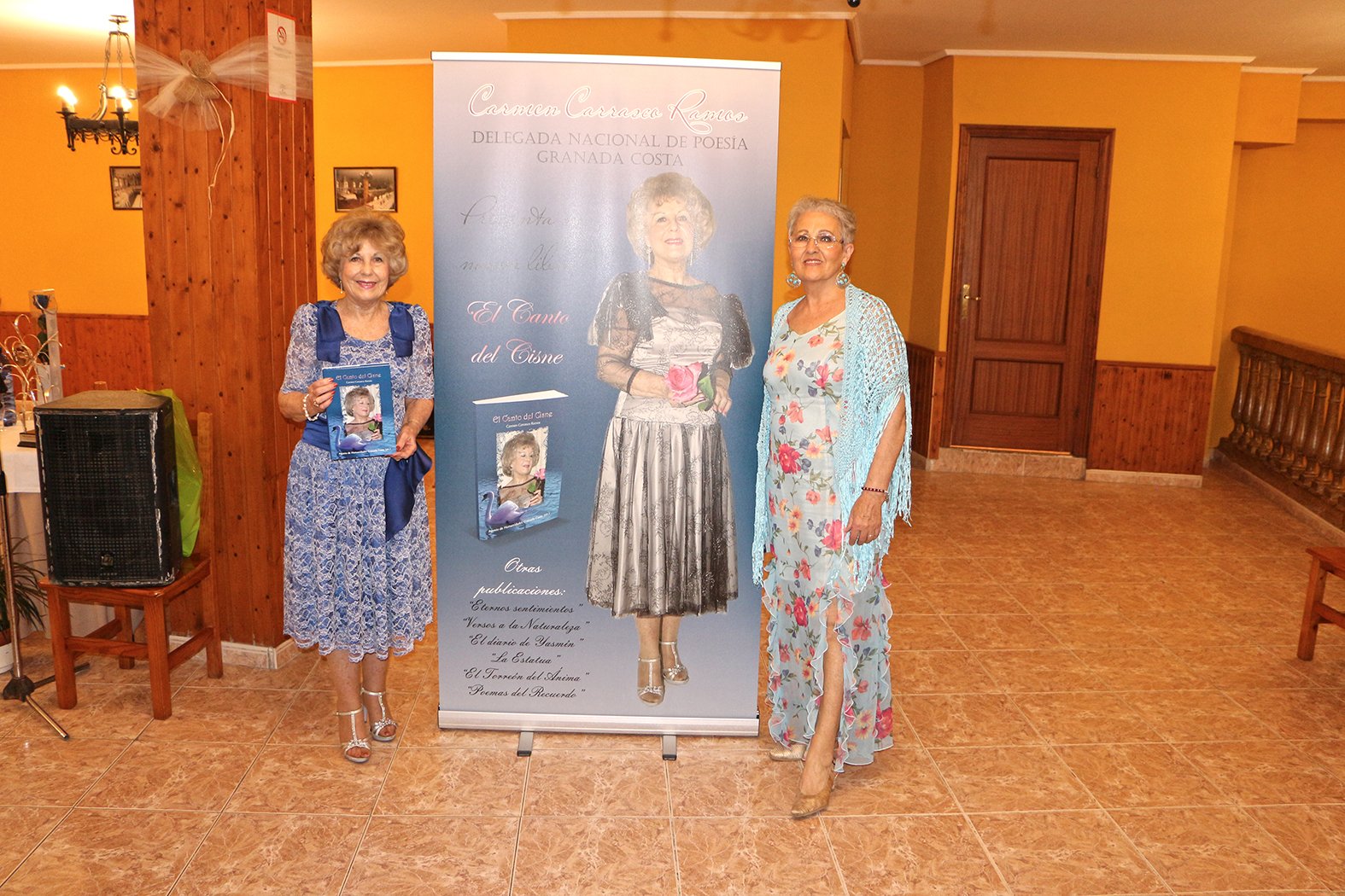 El pasado día 30 de junio, convocados por el Proyecto Nacional de Cultura Granda Costa a través de su presidente José Segura, se dieron cita un centenar de personas para rendir dignísimo homenaje y presentar su último libro, “El canto del cisne”, a la Delegada Nacional de Poesía, Doña Carmen Carrasco Ramos. José Segura fue el encargado de saludar al público asistente y a la propia Doña Carmen Carrasco Ramos, comentándole al público y a los compañeros que se encontraban allí que los micrófonos estarían abiertos para todas aquellas personas que quisiesen decirle algo a Carmen o entregarle algún regalo. A las folclóricas, Inmaculada Rejón y Pepi Díaz, les dijo que podían dedicarle los temas que quisiesen. Y a las dos parejas de baile presentes, Francelina Robin y su marido Claude y a Soledad Durnes y su marido Tom, que podrían bailar los temas que ellos viesen oportunos.