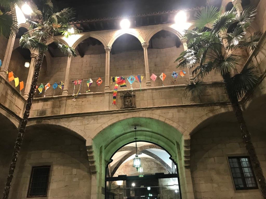 Centenares de cometas llegadas de miles de niños de diversos centros educativos de Cataluña adornaban el patio centras del antiguo Hospital de santa María en pleno entro de la ciudad de Lleida, en las arcadas iluminadas dejaban el reflejo de los miles de deseos de salud para niños y jóvenes.