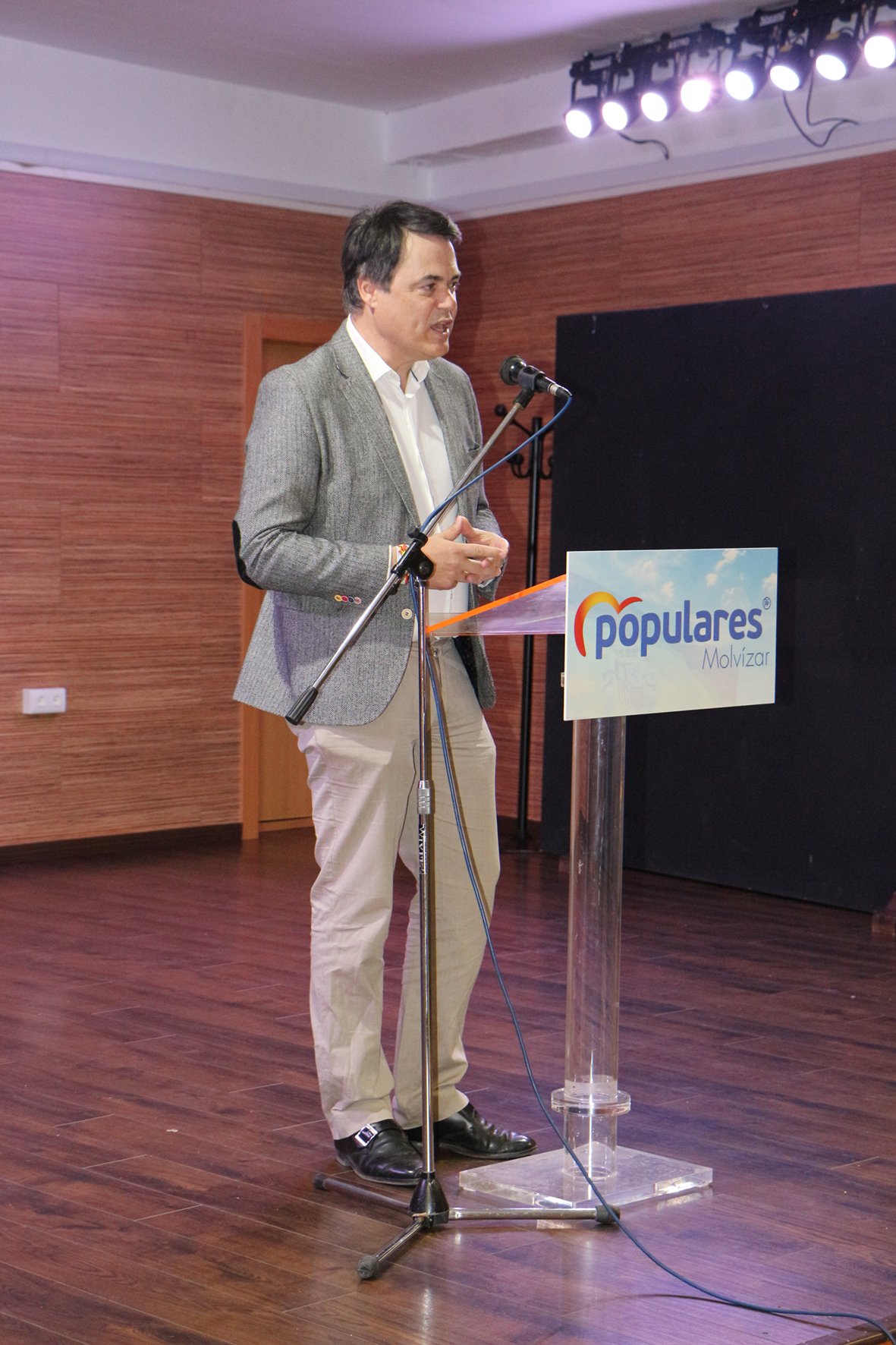 Abrió el acto el Diputado Provincial, José Antonio Robles, que transfirió todo el apoyo del Partido Popular territorial a la candidata molviceña a la Alcaldía por el Partido Popular, Fausti Béjar. En su intervención, quiso poner de relieve la mala gestión de la Diputación Provincial desde que entró al poder el Partido Socialista y que en los años en que gobernó el Partido Popular se creó más riqueza y trabajo.