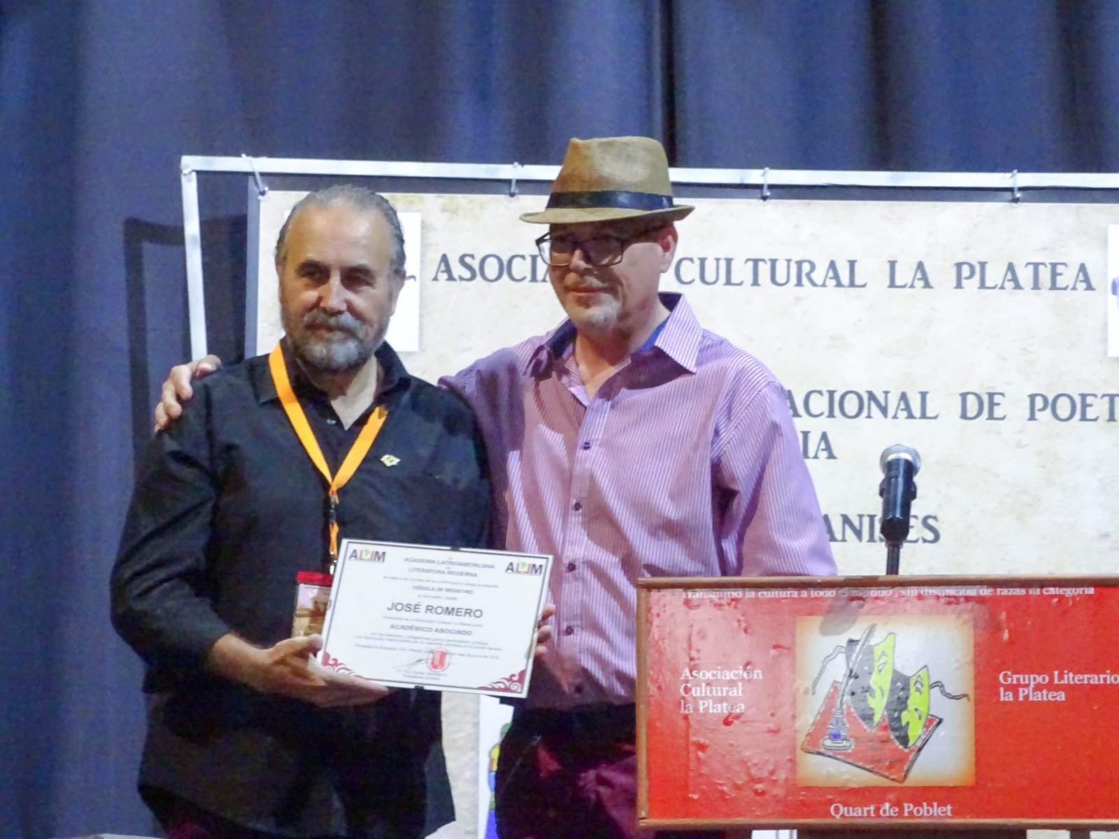 En la sesión de tarde del segundo día el presidente en España de la Academia Latinoamericana de Literatura Moderna y presidente de Poetas de Al-Mansura Ángel Luis Alonso Andújar , entrego a José Romero el nombramiento de presidente de la Academia Latinoamericana ALAS para Valencia , y para la Asociación Cultural La Platea como asociada a la Academia.