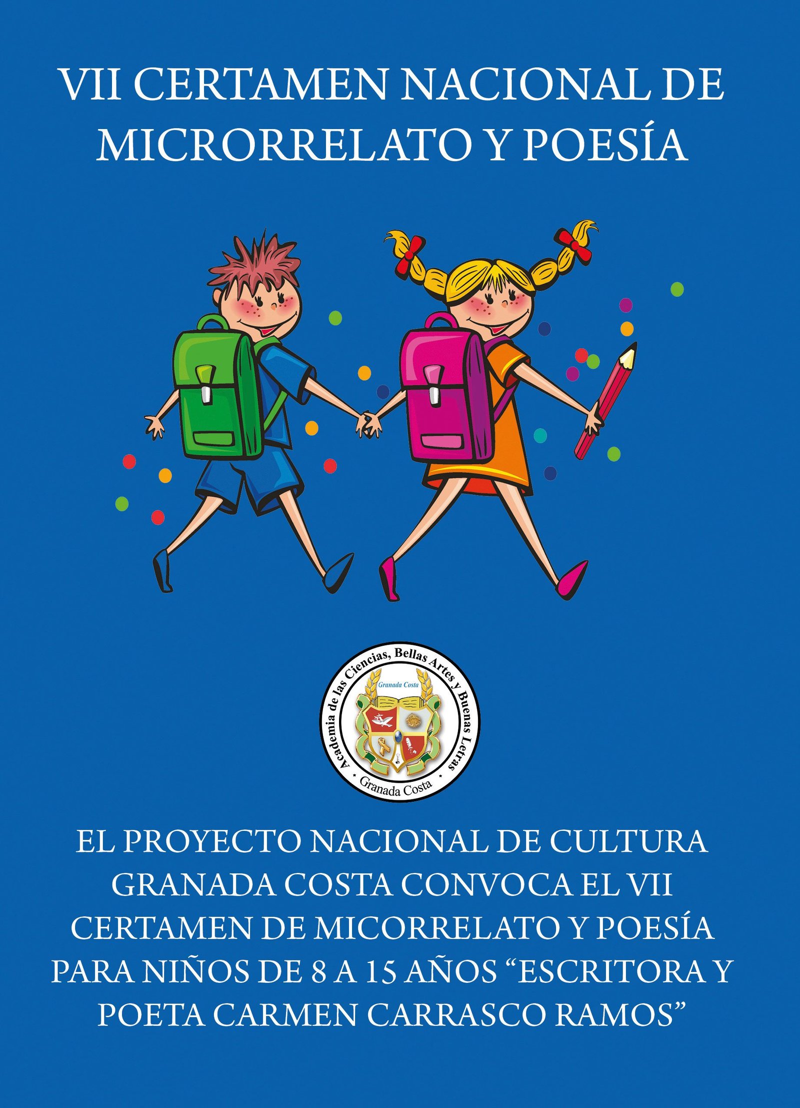 Desde el Proyecto Global de Cultura Granada Costa, a través de su Academia de las Ciencias, Bellas Artes y Buenas Letras, y con motivo de difundir la literatura, se convoca el VII Certamen Nacional de Microrrelato y Poesía Granada Costa para niños/as de 8 a 15 años “Escritora y Poeta Carmen Carrasco Ramos”